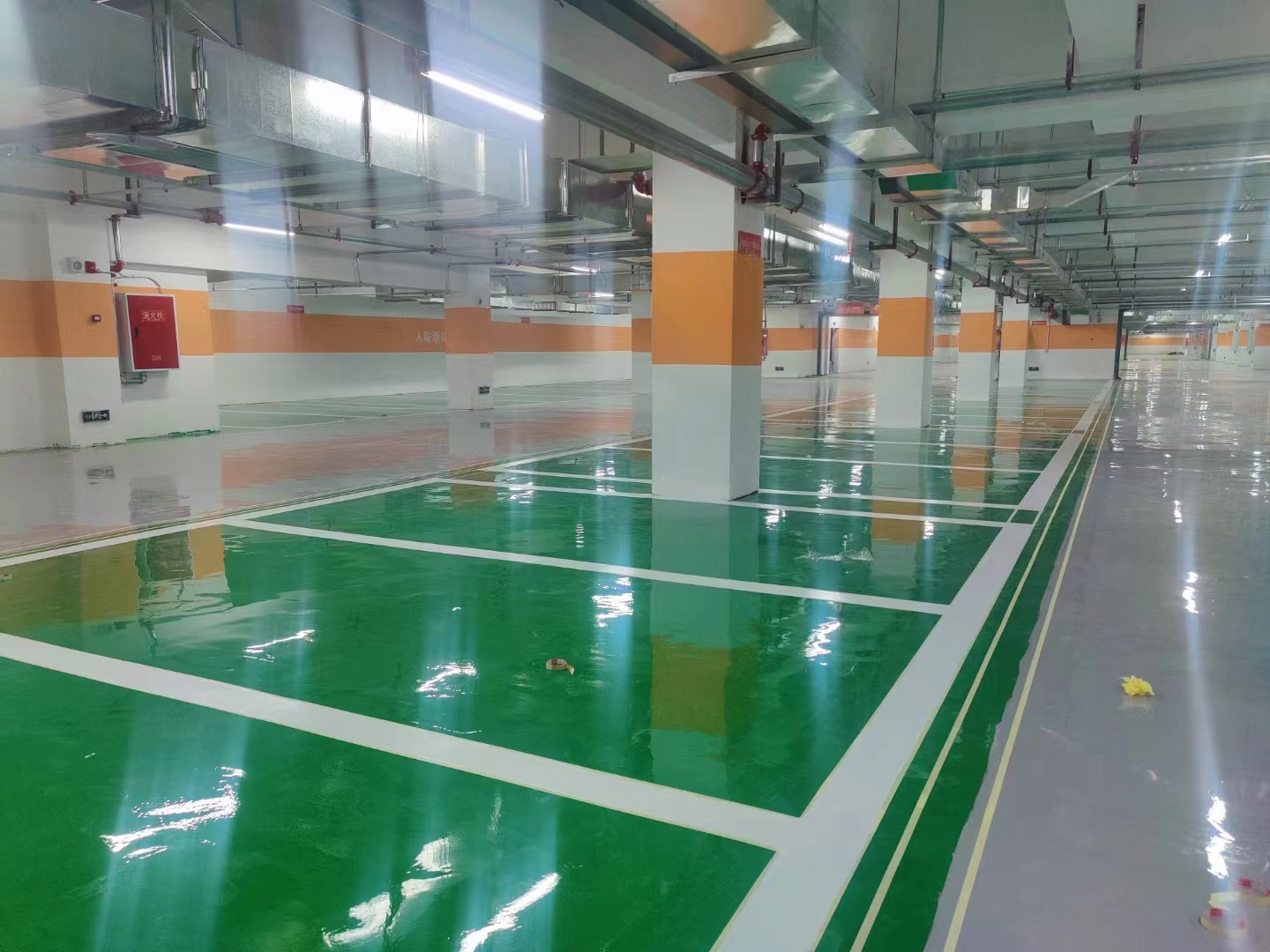 3.耐磨防滑:環(huán)氧地坪漆被廣泛運(yùn)用在停車場(chǎng),運(yùn)動(dòng)場(chǎng)等等,可行走重型車輛。